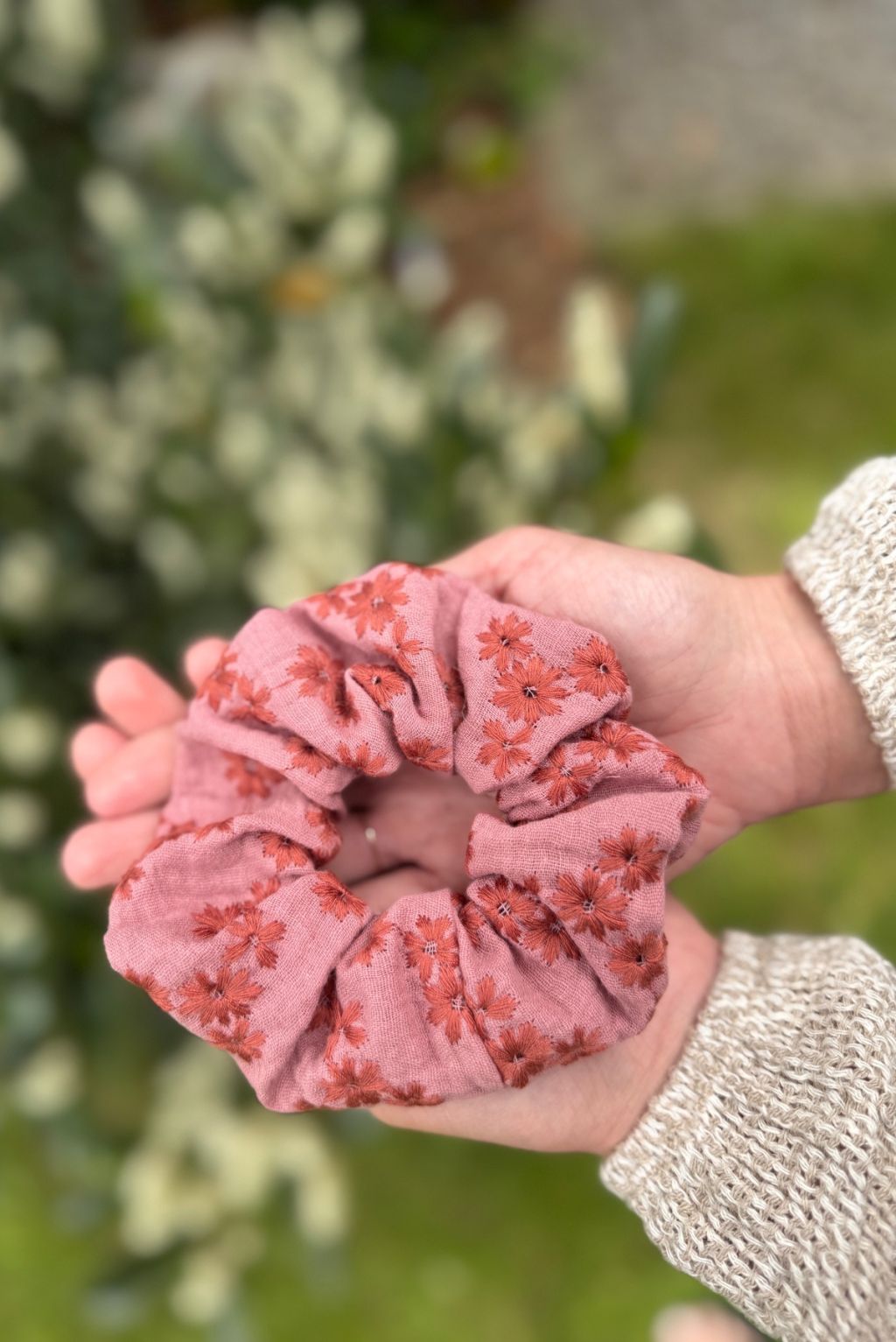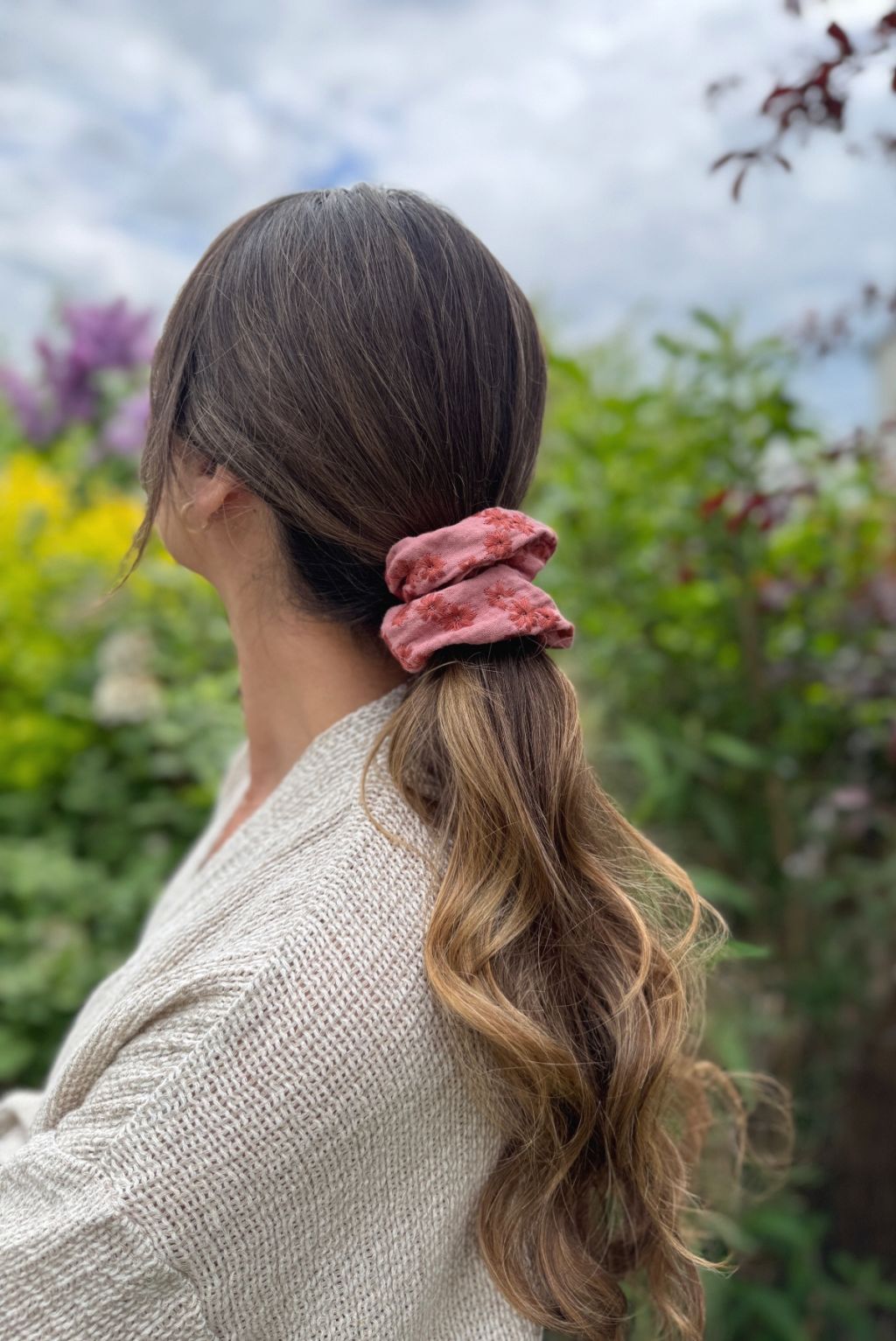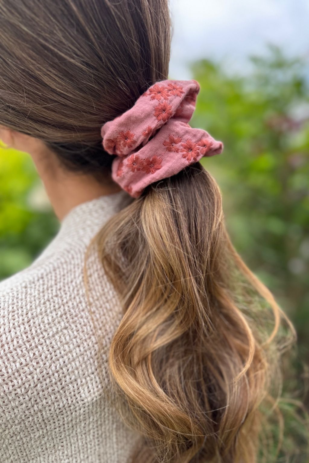 SISTU x OLEKSY Duża gumka do włosów haftowana brudny róż