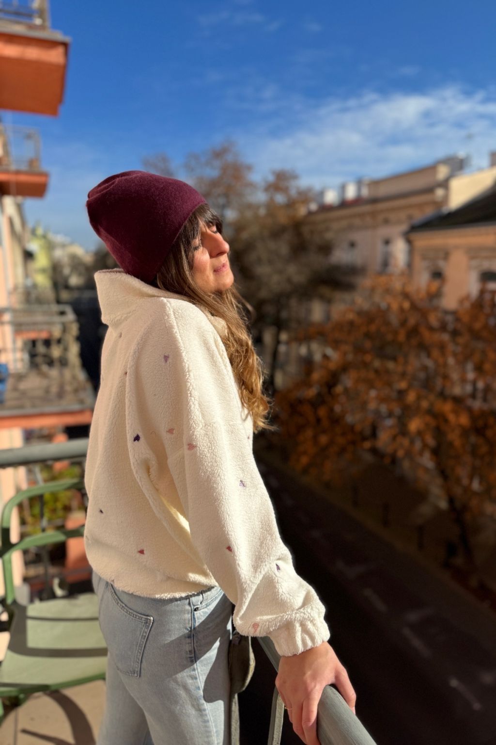 Kaszmirowa dwustronna czapka beanie to owoc naszej podróży do Nepalu.