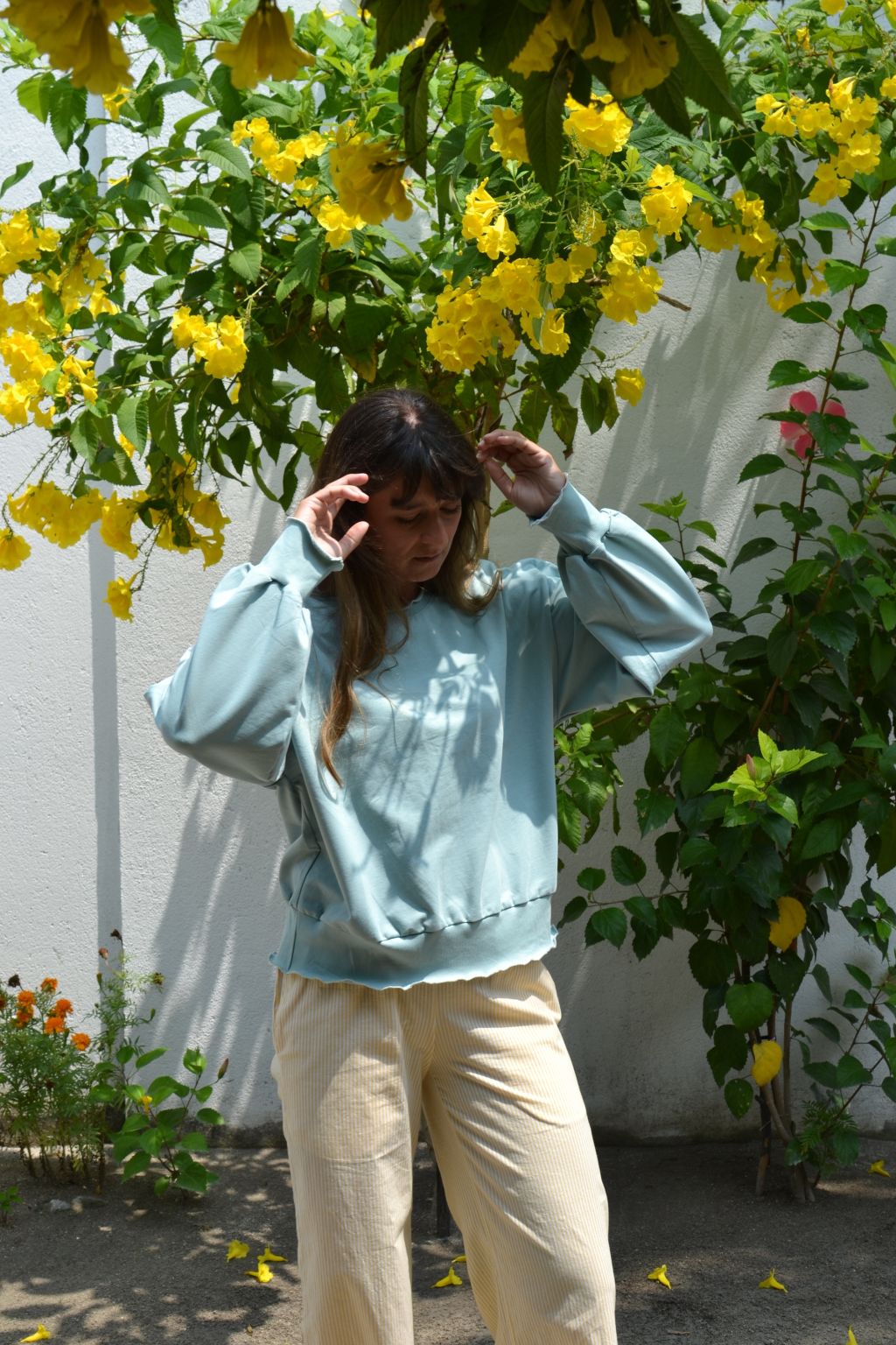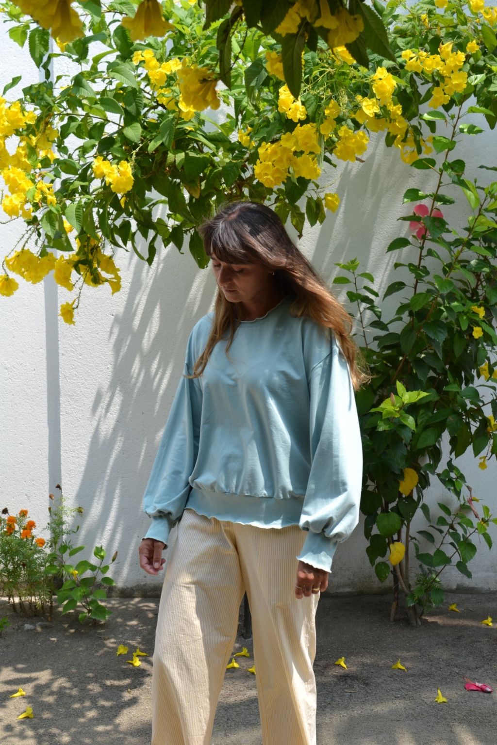 Bluza świetnie prezentuje się z naszymi spodniami w paski butter yellow.