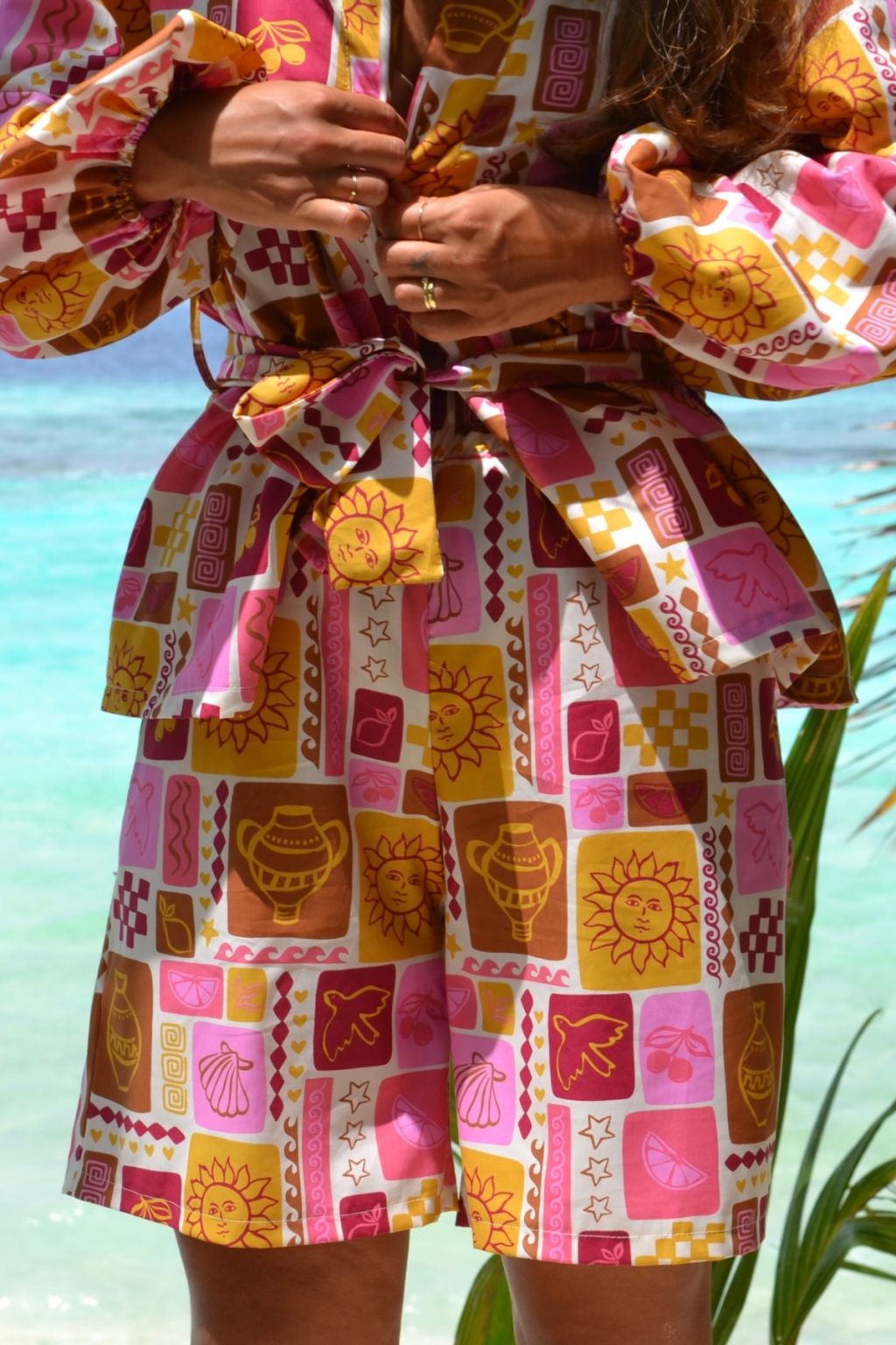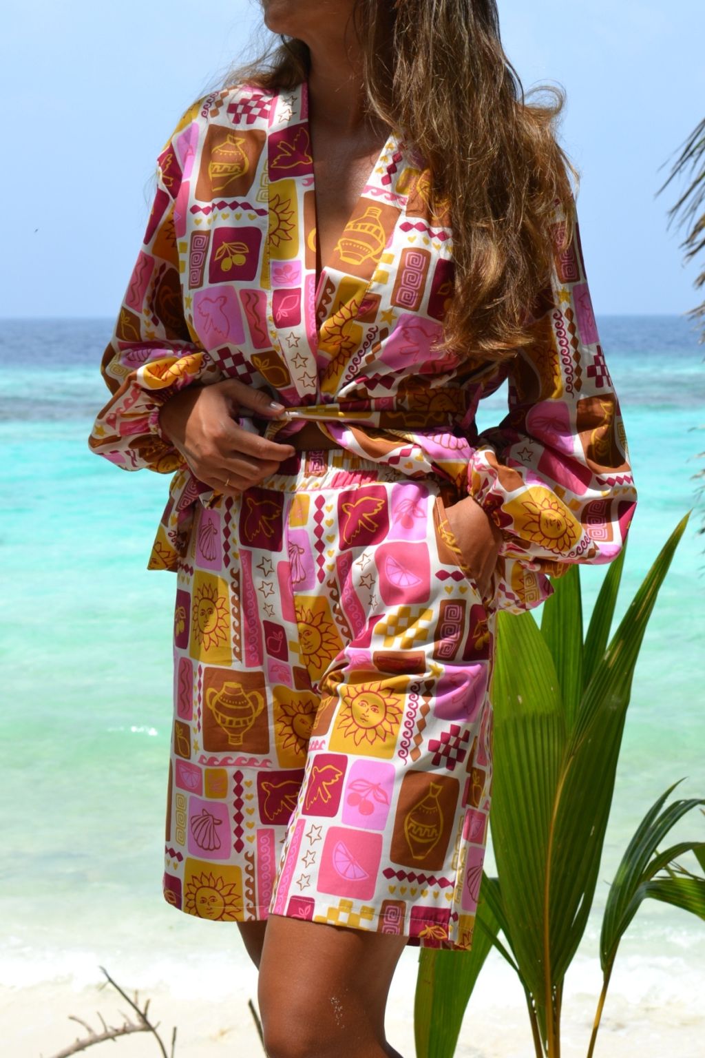 Z naszym kimono z balonowymi rękawami uszytą z tego samego materiału stanowią idealny zestaw na lato.
